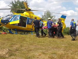 V pátek 12. července dvacet minut před 16. hodinou byli středočeští hasiči od zdravotnické záchranné služby vyžádáni k dopravní nehodě osobního automobilu a motocyklu na silnici první třídy číslo 12 v katastru obce Přistoupim na Kolínsku. Zdravotnická záchranná služba na místo povolala i vrtulník letecké záchranné služby.
