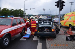 Dnes, 15. 9. 2015 v 6:58 byla oznámena na linku tísňového volání dopravní nehoda dvou osobních aut v Potoční ulici v Chomutově. V jednom z havarovaných aut měl zaklíněné nohy zraněný člověk.