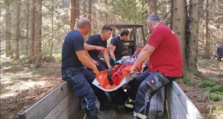 Starší žena si při sběru hub po špatném došlapnutí v lesním terénu zlomila dolní končetinu. Událost se stala na nedostupném místě u Přední Výtoně a tak posádka záchranářů TRANSHOSPITALu a hasičů z Frymburka použili k přepravě pacientky traktor s vlekem.