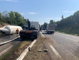 Na D10 se ve středu stala vážná dopravní nehoda, při které se cisterna oddělila od tahače a položila se na bok. Tahač se zastavil o středová svodidla. Důvodem nehody byl pravděpodobně defekt na přední pneumatice tahače.