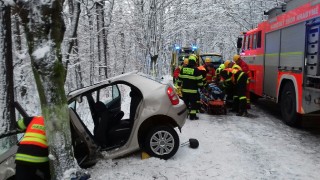 Posádky ZZS MSK zasahovaly dnes, ve středu 6. února ráno, u vážné dopravní nehody na Opavsku. Střet osobního automobilu se stromem na silnici mezi obcemi Chabičov a Velká Polom, byl operátorům záchranné služby nahlášen po sedmé hodině. K místu ihned zamířil hlučínský tým rendez-vous, posádka RZP z Dolního Benešova a také ostravští letečtí záchranáři.