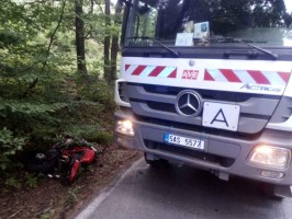 U dopravní nehody motorkáře a popelářského vozu na silnici ze Řevnic do Mníšku pod Brdy zasahovali řevničtí záchranáři Trans Hospitalu Plus spolu s lékařem a dalšími složkami IZS.