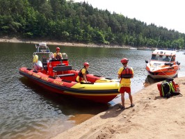 V pondělí, 17. 7. 2017 proběhlo na přehradě Slapy společné cvičení VZS ČČK Praha s Policií ČR. Potápěči hledali různé předměty a tým vodních záchranářů vše sledoval pomocí sonarové techniky, umístěné na jejich novém člunu.