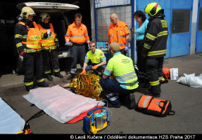 Ve 13:53 hodin v neděli 21.05.2017 asistovala jednotka profesionálních hasičů z Radotína záchranářům ZZS hl. m. Prahy v ulici Paroplavební. V pražské čtvrti Malá Chuchle tam na muže tam spadl ze zvedáku osobní automobil.