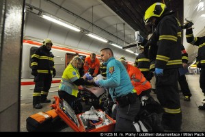 Hasiči a záchranáři zasahovali dnes ráno ve stanici metra Florenc, odkud byl hlášený pád osoby pod soupravu.