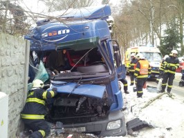 K vážně vypadající nehodě kamionu 26. 1. 2017 vyjížděla posádka RLP Zdravotnické záchranné služby JmK. Vozidlo sjelo nedaleko od Adamova z komunikace, pravou částí kabiny přelomilo strom a poničilo zeď přilehlého stavení.