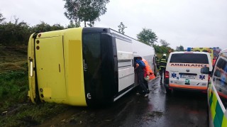 Od dopoledních hodin zasahují písečtí profesionální hasiči u dopravní nehody autobusu převážejícího 48 dětí z letního tábora na výlet.