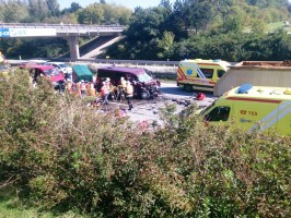Na 219. km dálnice D1 ve směru na Brno vyjížděly dnes ve 13. hod. jednotky k tragické dopravní nehodě dodávky s přívěsem a nákladního automobilu. V dodávce cestovalo celkem 9 osob. Hasiči museli zraněné vyprošťovat. Celkem pět cestujících utrpělo při nehodě zranění neslučitelná se životem. Tři zraněné převezla k dalšímu ošetření Letecká záchranná služba a posádky ZZS. Jeden zraněný zůstal po ošetření na místě.