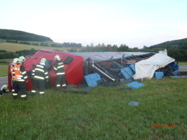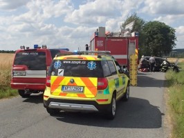 Operační středisko vyslalo 16. 7. 2015 odpoledne jednotku z Košutky ve směru na Karlovy Vary k odbočce na Všeruby k dopravní nehodě osobního auta. Vozidlo zůstalo stát na všech čtyřech kolech, částečně skončilo v příkopě.