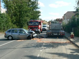 Operační středisko vyslalo dne 8. 7. 2015 po poledni jednotky z Plzně Slovan a ze Středu k dopravní nehodě, ke které došlo na Klatovské ulici za obcí Litice u odbočky ke kamenolomu. Střetlo se zde osobní auto s nákladním. Osobní auto motorovou částí skončilo pod kabinou kamionu. Uvnitř zůstal zaklíněný řidič v bezvědomí.