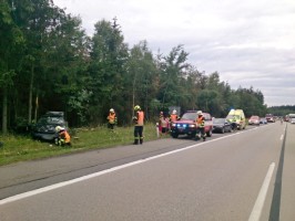 Dálnice D1 na 167.km směr Brno byla 8.7.2015 po nehodě osobáku neprůjezdná. Na místě přistál vrtulník LZS. Havarovaný osobní vůz zůstal po nehodě mimo dálnici. Dva lidé se zranili.
