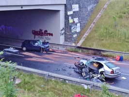 Dnes, 21.6.2015 v ranních hodinách došlo na pražské ulici Průmyslová k dopravní nehodě, při které se zde střetl motocykl s osobním automobilem.