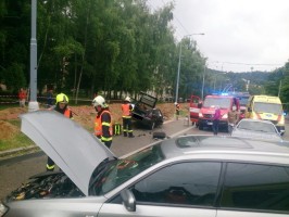 Hasiči z PS Brno-BVV a záchranáři ZZS JMK vyjížděli 19.6.2015 před 8. hodinou ráno k dopravní nehodě dvou osobních vozidel do Kohoutovic na Libušinu třídu.