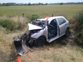 K nehodě osobního auta u Brankovic na Vyškovsku vyjeli 13.6.2015 ráno profesionální hasiči ze stanice Bučovice společně se ZZS.