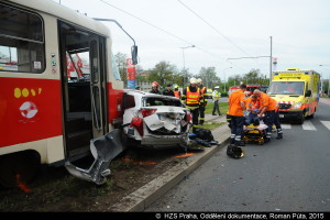 Hlášení o srážce tramvaje s osobním vozem v Libni převzalo zdravotnické operační středisko pražské ZZS dne 5. 5. 2015 krátce před polednem. Do Českomoravské ulice ihned vyjel lékař a posádka rychlé zdravotnické pomoci.
