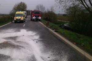 Dnes po půl sedmé ráno vyjeli záchranáři a profesionální hasiči ze Slavkova k dopravní nehodě jednoho osobního auta do Otnic.