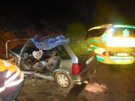 Mladá řidička s třináctiletým chlapcem narazila pravděpodobně po smyku do betonového mostku a utrpěla středně těžká zranění.Po vyproštění hasiči byla i se synem transportována do motolské