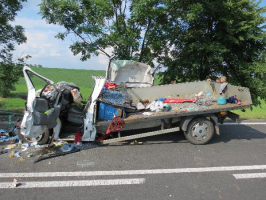Více než hodinu a půl královéhradečtí záchranáři ošetřovali šestačtyřicetiletého řidiče ve vraku havarované dodávky, než se hasičům podařilo jej ze zdemolovaného vozu vyprostit.