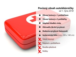 Návrh změn vyhlášky ministerstva dopravy počítá od října se zmenšením obsahu povinné výbavy vozidel. Nově by už v automobilech nemusely být náhradní žárovky nebo pojistky. V lékárničkách pro poskytnutí první pomoci by nutně nemusely být také nůžky, plastová rouška, trojcípý šátek nebo náplasti s polštářkem.
