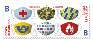 Motivem nové výplatní písmenové poštovní známky, kterou Česká pošta začne prodávat ve středu 24. června, jsou roušky se zjednodušenými symboly zdravotníků, pošty, armády, policie, hasičů a všech ostatních, kteří si navzájem pomáhali a v nelehké době koronavirové krize drželi při sobě. Autorem výtvarného návrhu známky je Filip Heyduk.